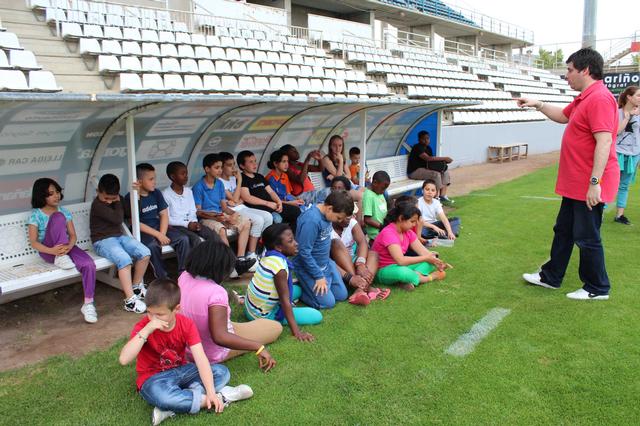 Una trentena d’infants de les ciberaules municipals van visitar aquest dijous les instal·lacions del Camp d’Esports, acompanyats pel responsable de l’àrea Sports Events, Ramon Folguera. Els nens i les nenes van poder conèixer de primera mà les dependències del camp municipal, on s’entrena i juga el Lleida Esportiu. La visita va incloure la sala de premsa i la sala de trofeus, entre altres. El grup de nens es va poder asseure a la llotja presidencial, amb una vista privilegiada del camp, i per acabar el recorregut, van entrar al vestidor visitant, on es van trobar amb els jugadors del Juvenil A del Lleida Esportiu i van aprofitar per preguntar-los sobre la pràctica del futbol.