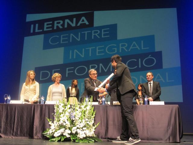 L’alcalde de Lleida, amb Miquel Àngel Cullerés, director SS.TT. d´Ensenyament; Maite Llorens, directora d´ILERNA; Antonieta Aldabó, directora Col•legi Sant Jaume, i Jordi Giné, president de l´AMPA, han lliurat les orles als alumnes d’Ilerna, de les diferents línies educatives: Batxillerat, Programa de Qualificació Inicial, Cicles Formatius de grau mitjà i superior.