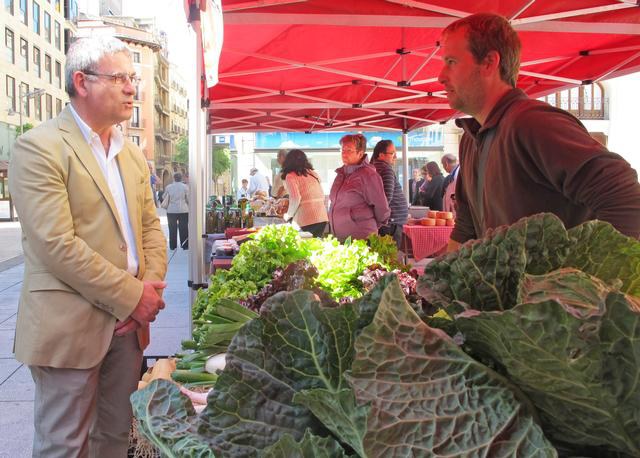 Joan Gómez ha visitat les parades del mercat que aquest diumenge s’han instal·lat, com cada primer diumenge de mes, a la plaça de Sant Joan