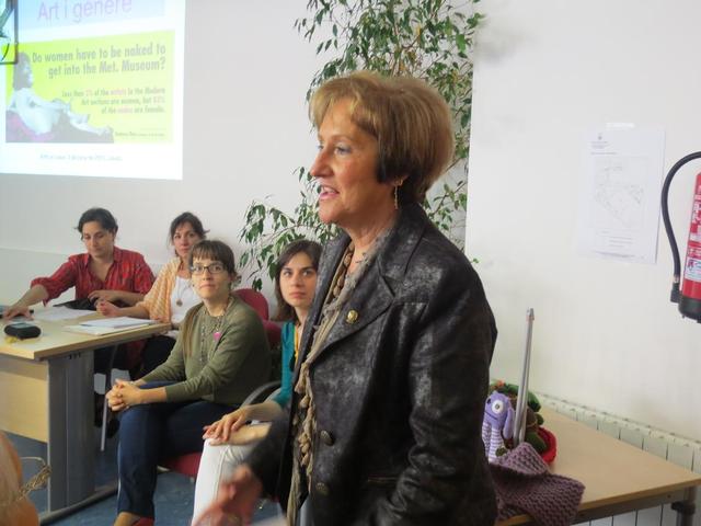 En la sessió d’aquesta tarda s'han presentat exemples d’arts plàstiques i visuals que utilitzen tècniques i materials propis de les labors (llanes, sedes, tapís, teixit, brodat..). Es tracta d’una nova experiència artística protagonitzada per dones joves, artistes i creadores que han sabut aplegar, per una banda la recuperació d’unes tradicions i uns sabers tradicionalment femenins com és l’art de teixir, ... amb la innovació. Han participat en aquesta sessió dues tècniques del Centre d’Art La Panera, Roser Sanjuan, tècnica de Gestió Cultural i Vanesa Ibarz educadora dels Serveis Educatius, que han parlat de les dones en les arts plàstiques i visuals, des d’una perspectiva de gènere, i com l’univers femení entra en el món de l’art contemporani.