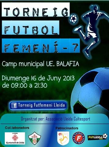 El Camp Municipal UE Balàfia acull, el proper dia 16 de juny de les 9h a les 21.30 hores un torneig de futbol femení-7, organitzat per l’Associació Lleida Cultesport amb la col·laboració de l’Ajuntament de Lleida. Els equips participants, provinents de la demarcació de Lleida i Tarragona, són el CF Pardinyes A i B, l’Atlètic Segre, Segrià Femení, el Soses C.F., el C.F.E.F. Les Garrgiues, el Lleida Esportiu A i B, l’AEM Femení, l’Alfès, el Camp Clar i el Reus Femení. Durant l’entrega de trofeus es durà a terme un homenatge a l’alpinista lleidatà Juanjo Garra.