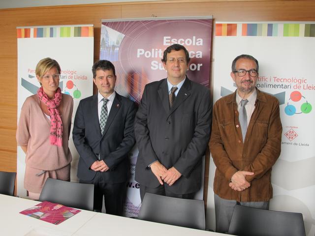 La tinenta d’alcalde i consellera del Parc, Montse Mínguez, el director de l’empresa GFT, Josep Ramon Freixanet, el director de l’Escola Politècnica Superior de la UdL, Francesc Giné, i el director del Parc Científic, Josep Clotet, han presentat aquest matí aquesta iniciativa, que intenta donar resposta a les necessitats laborals dels participants al curs tot fomentant el seu accés al mercat laboral internacional. Freixanet ha posat de manifest que el curs posa Lleida i, per extensió, el Parc Científic en el mapa internacional de les noves tecnologies. Mínguez, per la seva banda, ha destacat que les universitats assoleixen l’excel·lència si són capaces de connectar amb el món empresarial i apostar pel postuniversitari, i en això “el Parc Científic i Tecnològic de Lleida hi està col·laborant molt”. Finalment, Giné ha remarcat que aquesta iniciativa posa en relleu la bona col·laboració Universitat-Empresa existent a Lleida i l’aposta que s’està duent a terme per la internacionalització, i posa de manifest l’empleabilitat de les enyineries i la polivalència dels enginyers.