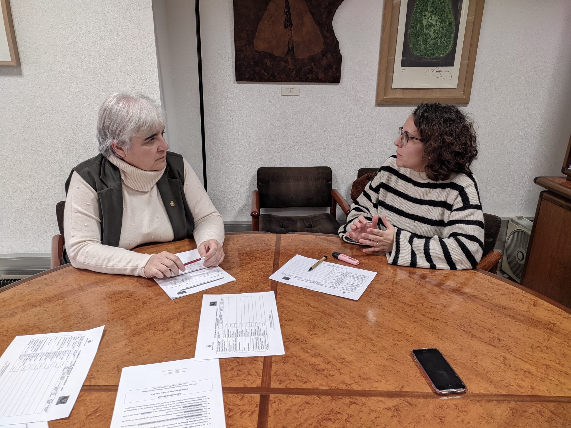 La tinenta d’alcalde i regidora de Polítiques Feministes, Carme Valls, i la presidenta del Col·legi de Periodistes de la Demarcació de Lleida, Laura Alcalde, s’han reunit aquest dijous per dur a terme l’acte d’obertura dels treballs que opten a l’XVII Premi Mila de Periodisme per a la Igualtat de Gènere a Lleida.