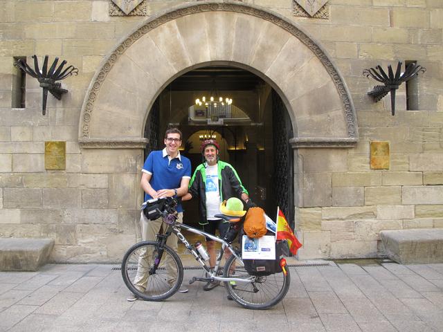 El regidor de Joventut, Oriol Yuguero, ha rebut aquest matí el ciclista Roberto Muñoz, que està realitzant una ruta en bicicleta des de la localitat valenciana d’Ontinyent fins a Franckfurt (Alemanya). El trajecte solidari s’emmarca dins la campanya benèfica “Tots per una vida”, que pretén per recaptar fons per Edu Pinto, un nen de set anys que pateix la síndrome de Guillain-Barré i Esclerosi Toràcica.