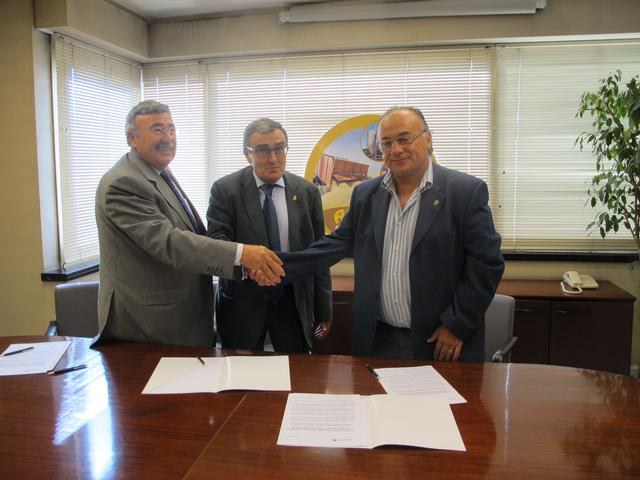 El President de la Fundació de la Fira de Lleida, Àngel Ros, el President de l’Associació Prinvicial del Comerç i la Maquinària Agrícola (Apricma), Eduard Abella, i el president de la Cambra de Comerç de Lleida, Joan Simó, han signat aquest matí un conveni de col•laboració que ha de permetre la presència del sector de la maquinària agrícola a la Fira de Sant Miquel. L’acord, formalitzat aquest matí a la seu d’Apricma i que tindrà una vigència de quatre anys, té l’objectiu d’optimitzar la professionalització, la sectorització i el servei als expositors de la Fira de Sant Miquel, amb la finalitat de captar més expositors, d’una banda, i d’atreure més visitants professionals, de l’altra.