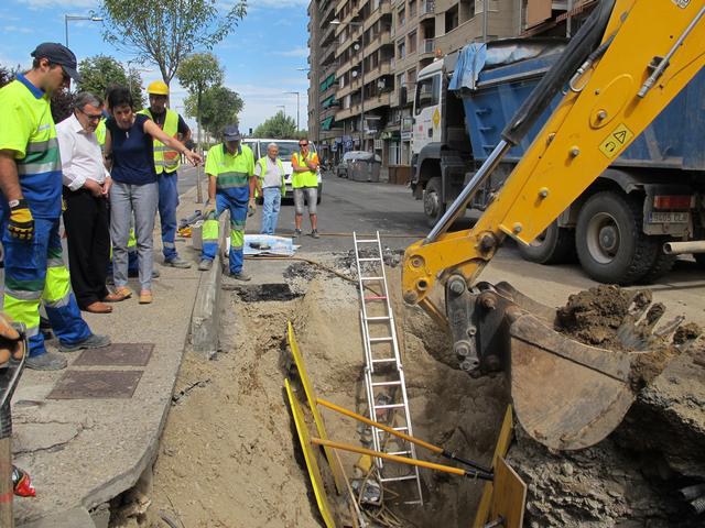 Els treballs per reparar l’esvoranc a la calçada de l’avinguda Rovira Roure continuen aquest diumenge, després que aquest matí els tècnics d’Aigües de Lleida ja hagin pogut detectar el punt del col·lector d’aigües residuals on s’ha produït la fuita. L’alcalde de Lleida, Àngel Ros, i la tinenta d’alcalde i regidora d’Urbanisme, Marta Camps, han estat aquest matí en la zona afectada per veure l’evolució dels treballs. Segons ha explicat l’alcalde, la fuga d’aigua es produeix en la connexió entre el col·lector i el pou de registre. El procés de reparació està sent llarg perquè es donen diversos factors que dificulten les tasques. El col·lector es troba a uns quatre metres de profunditat, s’ha d’anar traient l’aigua que surt del col·lector i, a més, s’ha d’anar en compte perquè hi passen molts serveis, com el gas, de tipus elèctric i semafòric o telefònic -ahir mentre hi treballaven els operaris es va trencar una canonada de gas de forma fortuïta i durant unes hores es va tallar el subministrament a uns 250 abonats de la zona -.