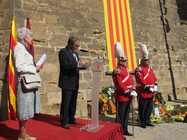 La ciutat de Lleida ha celebrat un any més els actes institucionals de l’Onze de Setembre al turó de la Seu Vella. El paer en cap, Àngel Ros, amb la pregonera d’enguany, l’escriptora Rosa Fabregat, i acompanyat de la Corporació Municipal i de les autoritats locals, ha presidit l’acte i ha insistit en què Catalunya té el dret i ha d’exercir el dret a decidir. L’alcalde, en el seu missatge institucional, ha afirmat que Catalunya ha de desenvolupar un projecte nacional que vagi en línia amb les aspiracions del poble i ha afegit “només amb l’exercici del dret a decidir resoldrem la crisi institucional actual”. Ros ha teixit el seu discurs dient que avui els catalans “commemorem un període tràgic de la nostra història, celebrem la nostra persistència com a nació i reivindiquem el dret sobre el nostre futur”.