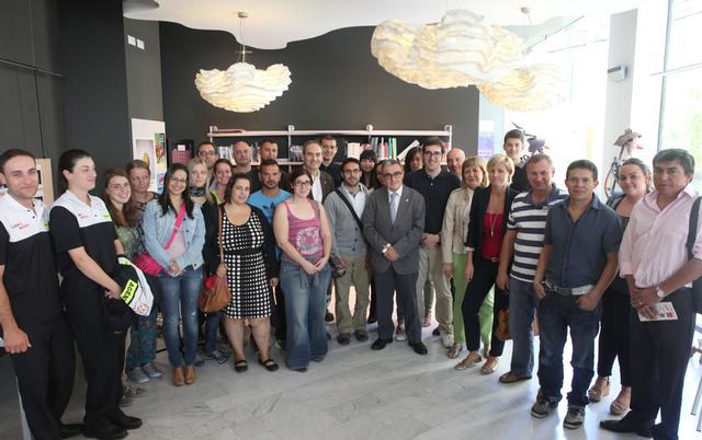 - L’Ajuntament de Lleida, amb la col·laboració de la Generalitat, ha ofert treball a 194 persones en el seu primer any de funcionament i hi ha destinat 500.000 euros - El Paer en Cap, acompanyat del tinent d’alcalde de Benestar Social i Ocupació, Josep Presseguer, i del regidor de Joventut, Oriol Yuguero, ha rebut avui al Centre La Palma un grup de joves que han participat en el pla