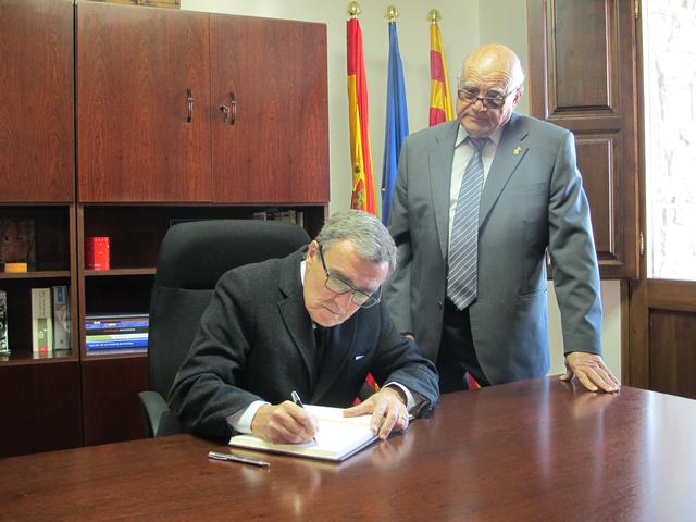 Ros ha agraït a l’alcalde de Llimiana, Joan Elies, la invitació per obrir la quarta edició d’aquesta fira, que ha comptat amb la presència de diverses autoritats de la comarca. A més, el paer en cap ha signat al Llibre d’Honor de Llimiana i ha pogut veure els documents històrics del poble, on es detalla tot el que hi havia inventariat del 1400 al 1800 a les finques i les cases.