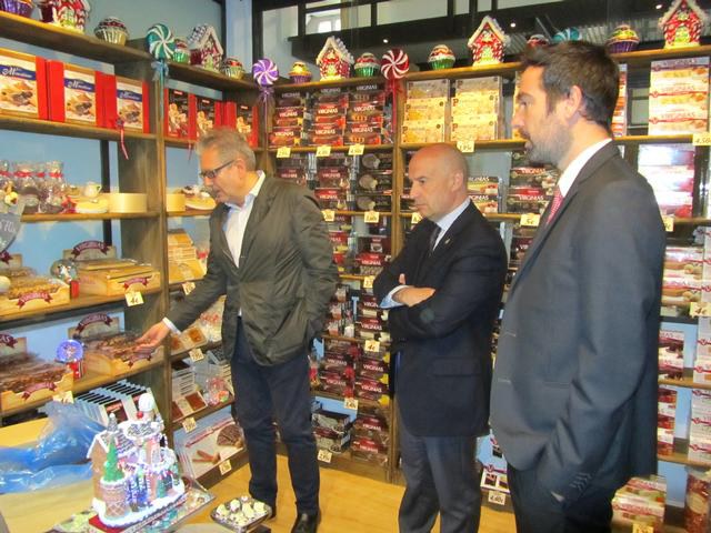 El tinent d’alcalde i regidor de Promoció Econòmica, Rafael Peris, i el regidor de Turisme, Fèlix Larrosa, han visitat aquest matí el Rebost de Virginias, situat al barri de Pardinyes. La botiga ven tots els productes que fabrica i comercialitza indústries Rodriguez S.A. com caramels, galetes i torrons amb la seva pròpia marca, aconseguit d’aquesta manera una obertura de la fàbrica i una aproximació molt ben valorada pels lleidatans i lleidatanes. Els regidors han coincidit en definir l’empresa com un exemple de suport a la indústria agroalimentària local i han destacat, especialment, la seva aposta per la internacionalització.
