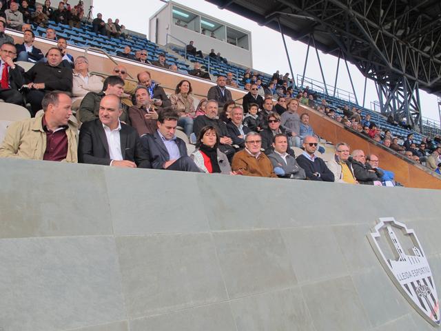 L’alcalde de Lleida, Àngel Ros, ha animat l’equip des de la llotja amb el president del club, Albert Esteve, i ha celebrat amb l’afició el punt aconseguit, que ha sabut a poc.