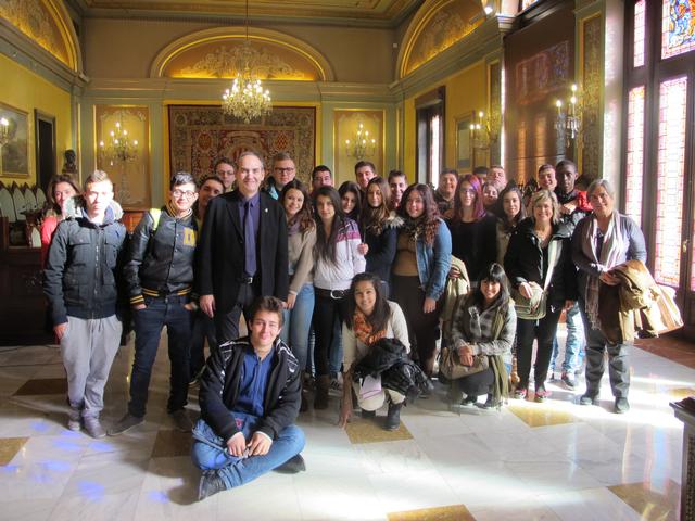 El tinent d’alcalde i regidor de Benestar Social i Ocupació, Josep Presseguer, ha rebut aquest matí un grup d’alumnes d’entre 16 i 20 anys que participen en el Programa de Qualificació Professional Inicial gestionat per l’IMO. Presseguer els ha donat la benvinguda a l’Ajuntament i els ha explicat la història i el funcionament del consistori, mostrant-ne el Saló de Sessions i el Saló del Retaule.