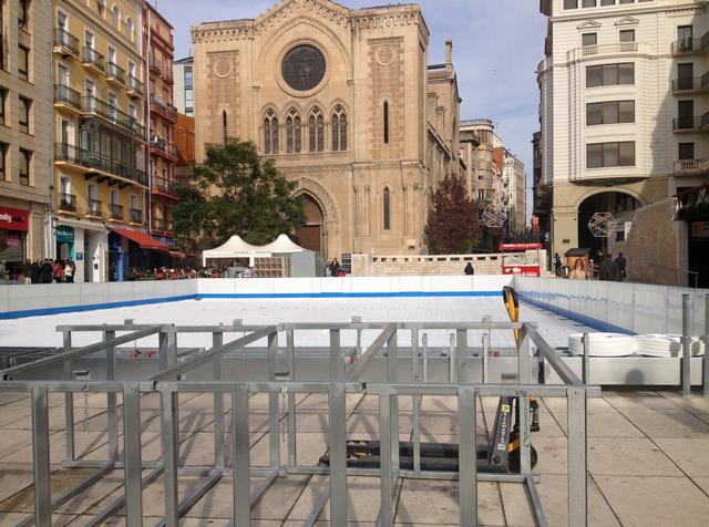 La instal·lació de la pista de gel a la plaça de Sant Joan de Lleida ha començat aquest diumenge amb la col·locació de les primeres estructures que delimiten l’espai i li donen forma. L’empresa N-ICE Skating SLU es l’encarregada de fer la instal·lació de la pista que es munta per segon any consecutiu durant la campanya nadalenca. Està previst que funcioni del 29 de novembre i el 19 de gener, amb una superfície de 400 metres quadrats i unes dimensions de 25 metres de llargada i 16 d’amplada.