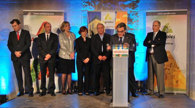 El conseller d'Agricultura, Ramaderia, Pesca, Alimentació i Medi Natural, Josep Maria Pelegrí; el president d’ActelGrup, Ramon Brualla, i altres autoritats, productors i representants del sector de l'oli, que han participat en un sopar de gala.