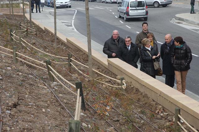 Per enjardinar el talús s’han plantat 225 unitats de Juniperus, 987 unitats de rosers de llarga floració i 1080 unitats de Carex fent un dibuix en el talús. Aquest dibuix s’ha fet amb tutors de fusta i corda de cànem. També s’han plantat 23 arbres alineat.