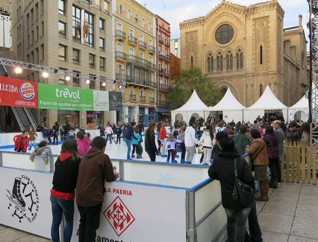 La pista de gel instal·lada a la plaça de Sant Joan de Lleida segueix en marxa després de Nadal. Des que es va posar en marxa fa cinc setmanes i fins aquest diumenge, dia 5 de gener, ja han gaudit de la pista 8.700 patinadors. D’aquests usuaris, uns 750 infants i joves són de diferents projectes d’infància de la Regidoria de Benestar Social i Ocupació de la Paeria, que han pogut patinar en aquesta instal·lació a través de la col·laboració amb l’empresa NICE. La pista romandrà oberta fins al 19 de gener.
