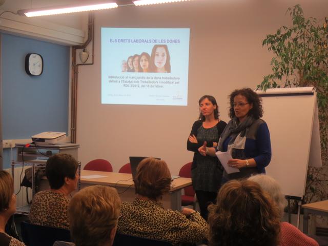 La sessió d’avui, on han assistit una vintena de dones, l’ha conduït l’advocada Esther Sancho, designada pel Col•legi de l’Advocacia com a lletrada experta en els drets de les dones en matèria laboral. Durant la seva ponència, Sancho ha destacat la importància de vetllar perquè aquests drets siguin respectats i ampliats en un futur.