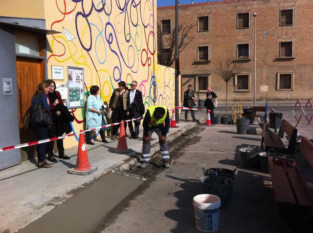 Així, dins d’aquesta actuació, s’amplia l’espai per als vianants, es millora l’accessibilitat de la vorera i s’instal·la nou mobiliari urbà, creant, així, una zona d’espera més segura. Amb l’adequació d’aquest nou espai s’allunya la zona d’aparcament i permet deixar lliure la façana del centre educatiu que fins ara quedava tapada pels vehicles que hi estacionaven. (tall de veu de la regidora d'Urbanisme, Marta Camps)