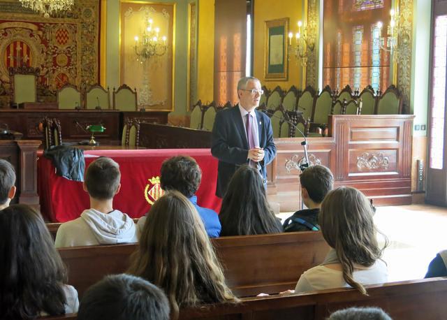 El regidor Jesús Castillo ha explicat a la vuitantena d’alumnes de 3r d’ESO diversos aspectes vinculats a l’administració local així com l’evolució de la institució de la Paeria