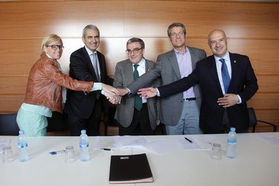 L’alcalde de Lleida, Àngel Ros, el Vicerector de Planificació, Innovació i Empresa Universitat de Lleida, Ferran Badia, i el gerent territorial a Catalunya de Jazztel, José Manuel Serra, han signat avui un conveni de col•laboració que permetrà que Lleida sigui una de les primeres ciutats del món a tenir una cobertura en fibra òptica de tecnologia FTTH (Fiber to the Home) a més del 90% de les llars de la ciutat quan es produeixi el desplegament dels diferents operadors, a final d’any. Jazztel invertirà 15,4 milions d’euros a Lleida per al desplegament de fibra òptica amb l’ objectiu d’arribar a 66.740 llars, locals comercials i empreses. Aquesta actuació generarà a Lleida, fins a finals d’any, uns 310 llocs de treball entre llocs de treball directes, indirectes i induïts. L’objectiu del conveni signat avui entre Jazztel i l’ Ajuntament de Lleida és millorar i proporcionar una major velocitat als usuaris de banda ampla d’accés a Internet.
