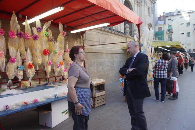 La plaça de la Catedral acull el tradicional Mercat de Palmes i Palmons fins al 13 d'abril. El tinent d’alcalde i regidor de Comerç, Consum i Mercats, Rafel Peris, ha visitat aquesta tarda els paradistes que exposen l'àmplia oferta artesana de palmes i palmons que guarnirà el Diumenge de Rams.