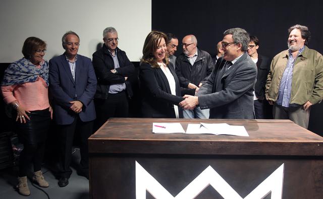 L’alcalde de Lleida, Àngel Ros, i la Presidenta de la Fundació Sorigué, Ana Vallés, signen el conveni per realitzar el projecte Moviement al Magical