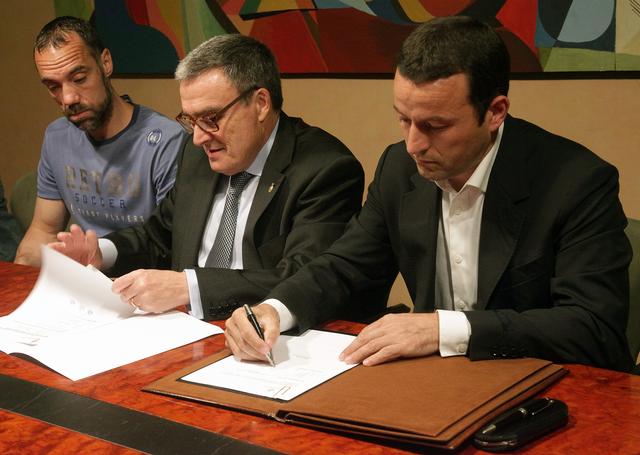 A la signatura del conveni hi ha assistit la tinenta d' alcalde Montse Parra, el regidor d'Esports Txema Alonso, el cap de l’oposició, Joan Ramon Zaballos, el portaveu de PP,Joan Vilella i el regidor Paco Cerdà.