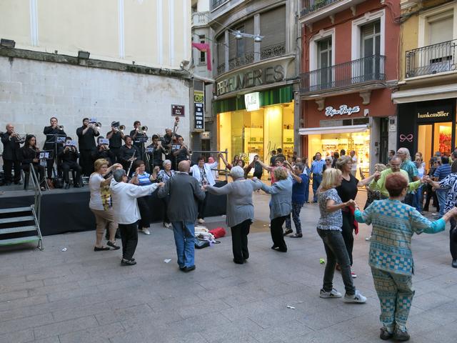 Desenes de persones s’han aplegat aquest vespre a la Plaça Paeria per ballar sardanes al ritme de la Cobla Municipal de Lleida. La Plaça Paeria, el carrer Major i la Plaça Sant Joan han bullit d’activitat i bon ambient durant tota la tarda amb motiu de la Festa Major de Lleida, que s’ha iniciat avui amb la sortida del pregó, la tronada i el cercavila amb els elements del seguici de la festa.