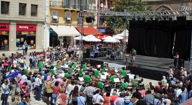 La plaça de Sant Joan ha ressonat a ritmes de bateria aquest migdia amb el festival Planeta Bateria. La trobada ha reunit percussionistes i bateries de tot Catalunya que han fet sonar els seus instruments amb ritmes trepidants i exòtics. El festival ha inclòs un concert a càrrec del grup de percussió africana Sanbanyi i un altre multitudinari de bateries. Centenars de persones s’han aplegat per escoltar les actuacions, que han omplert de música els racons de la plaça, escenari de diversos espectacles musicals durant la Festa Major de Maig.
