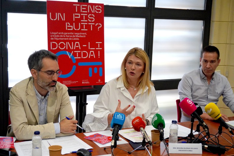 L’Empresa Municipal d’Agenda Urbana (EMAU) inicia una campanya per a promoure la cessió d’habitatges de particulars a la Xarxa de Mediació per al lloguer social, han explicat avui en roda de premsa la primera tinenta d’alcalde i presidenta de l’EMAU, Begoña Iglesias, el gerent de l'EMAU, Samuel de la Fuente, i David Freixa, cap del Servei Territorial d’Habitatge de la Generalitat a Lleida.