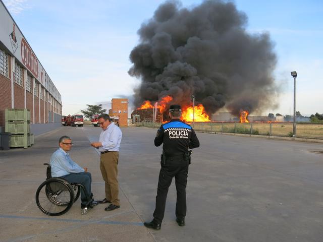 El paer en cap i l’alcalde de Torrefarrera han seguit les tasques dels bombers per sufocar un incendi en un palots que ha provocat una gran columna de fum