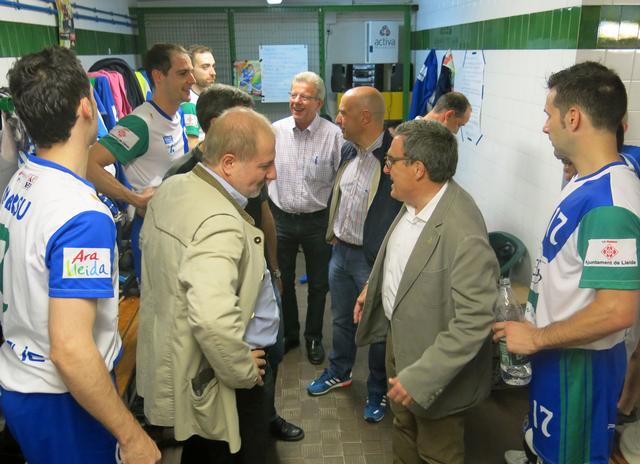 L’ICG Lleida Llista ha donat un pas important per a la permanència a l’OK Lliga. Aquest diumenge ha guanyat el partit contra el Vendrell, per 7 gols a 3, al pavelló municipal Onze de Setembre. L’alcalde de Lleida, Àngel Ros, ha baixat al vestidor de l’equip per felicitar els jugadors i el cos tècnic per aquesta important victòria i els ha desitjat sort de cara als tres últims partits de la competició de lliga. Ros també ha traslladat la felicitació al president del club, Enric Duch, amb qui ha compartit la llotja, juntament amb el tinent d’alcalde Rafael Peris, el cap de l’Oposició, Joan Ramon Zaballs, i la regidora Bea Obis, i l’alcalde d’El Vendrell, Martí Carnicer.