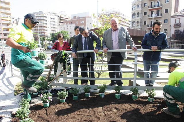 L'alcalde de Lleida, Àngel Ros, acompanyat de la 1a tinent d'alcalde i regidora d'Urbanisme, Marta Camps, i del regidor de Medi Ambient, Josep Barberà, ha visitat aquest dilluns la recta final de la millora de l'enjardinament de la plaça Ricard Viñes que quedarà enllestida avui mateix. La nova vegetació arbustiva, la reposició d'alguns arbres i la plantació de flors, així com un paviment de color i gespa a les graderies donen una imatge renovada de l'espai.