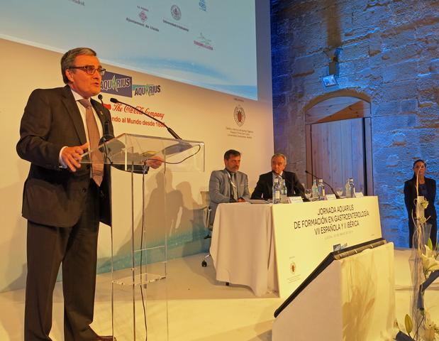 El Castell del Rei acull aquest divendres la Jornada Aquarius de Formació en Gastroenterologia: VII Espanyola i II Ibèrica. L’alcalde de Lleida, Àngel Ros, ha donat la benvinguda als ponents nacionals i internacionals i als més de 150 Metges Interns Residents (mires) d’hospitals universitaris d’Espanya i Portugal que s’han donat cita a Lleida en aquesta jornada formativa. L’alcalde els ha tramès la riquesa històrica i patrimonial del conjunt monumental de la Seu Vella, que aquesta setmana ha estat d’actualitat ja que la Generalitat l’ha inclòs en la llista estatal per ser candidat a Patrimoni Unesco. Ros ha parlat de la importància del conjunt del Turó, remetent-se als segles XII, XIII i XIV, incidint en La Suda, escenari de capítols històrics rellevants per a la història. L’alcalde ha explicat que la vinculació amb la història d’un territori fa que s’apreciï més i que els visitants se’l facin més seu. En les paraules que ha dirigit als assistents a la jornada, l’alcalde els ha encoratjat a formar-se i a aprendre, en tant que “tots som pacients i usuaris” seus, contribuint a l’alt nivell de la Medicina del país.