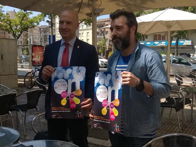 La Nit Oberta Zona Alta arriba aquest divendres a la seva quarta edició amb l'objectiu d’omplir tots els seus carrers de comerç i diverses activitats. El tinent d'alcalde i regidor de Comerç, Consum i Mercat, Rafael Peris, i el president de l'AAVV de la Zona Alta, Miquel Ballesté, han presentat aquest inicativa que pretén donar a conèixer els establiments associats i potenciar el comerç de proximitat.