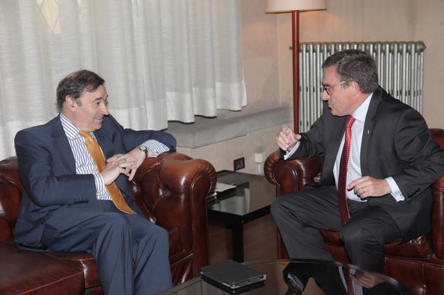 L’alcalde Àngel Ros rep Pedro J. Ramírez amb motiu de la seva visita a Lleida