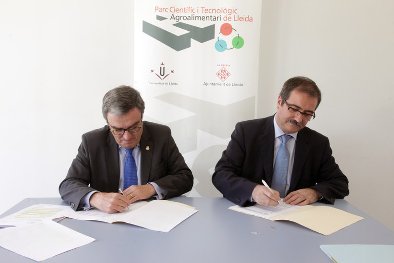 L’alcalde de Lleida, Àngel Ros, com a president del Parc Científic i el director General de Formació Professional i Ensenyaments de Règim Especial de la Generalitat, Melcior Arcarons, han signat avui un conveni de col•laboració que ja s’aplicarà al curs 2014-15