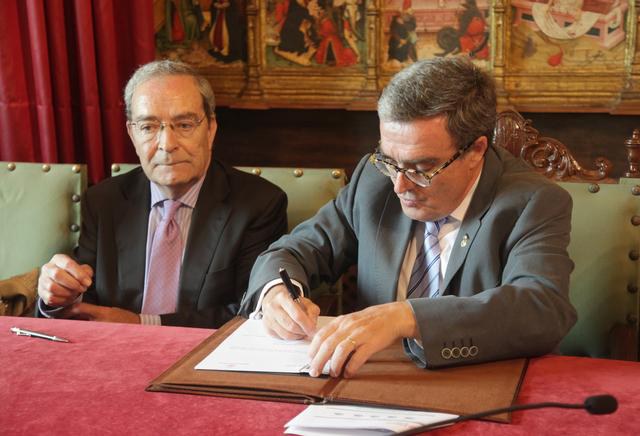 L’alcalde de Lleida, Àngel Ros i el director general de la Fundació “La Caixa”, Jaume Lanaspa, han signat avui un conveni de col·laboració per impulsar la promoció de l’envelliment actiu i la qualitat de vida de les persones grans de la ciutat, en el marc del projecte Gent 3.0, a través d’activitats de formació i dinamització i impulsant accions de participació social i voluntariat –amb projectes socials, tecnològics o culturals-, i activitats de promoció de la salut. El compromís signat avui suposa, en paraules del paer en cap, un pas més en la col·laboració que ambdues institucions mantenen des de 1998 i que ha permès dur a terme un ampli programa d’activitats a 10 llars de gent gran conveniades i als dos esplais propis de l’Obra Social “La Caixa”. En aquest sentit, durant el darrer any gairebé 12.000 persones de Lleida van participar en les 384 activitats programades, destinades a fomentar un envelliment actiu.