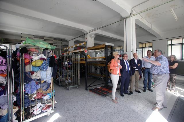 L’alcalde Àngel Ros, acompanyat dels tinents d’alcalde Montse Mínguez i Rafel Peris han visitat avui el projecte d’inserció social de Càritas consistent en la recollida i tractament de roba usada, que té la seu central al Parc de Gardeny.