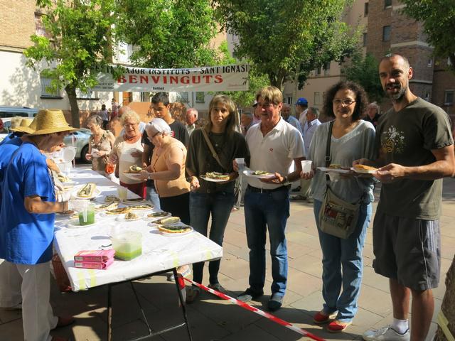 La tradicional sardinada ha obert els actes festius del cap de setmana al Instituts-Sant Ignasi. La regidora de barri, Ma. Rosa Ball, i els regidors Txema Alonso, Bea Obis, Miquel Padilla i Pau Pintó han compartit amb els veïns aquest esmorzar popular que aplega un centenar de persones a l’avinguda de Madrid. L’AV, presidida per Carlos Gómez, ha preparat uns 30 quilos de sardines amb unes 15 quilos de pa.
