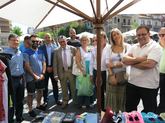 L’alcalde de Lleida, Àngel Ros, acompanyat del President de l’Associació de Comerciants de la Zona Alta, Miquel Ballesté, el tinent d’alcalde i regidor de Promoció Econòmica, Rafael Peris, la tinenta d’alcalde i regidora de Cultura, Montse Parra, i el regidor d’Esports, Txema Alonso, han donat avui el tret de sortida del Mercat de les Rebaixes d’Estiu de la Zona Alta, que enguany arriba a la vuitena edició.