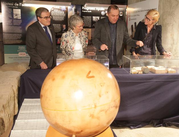 L’alcalde Àngel Ros, acompanyat de la filla del científic, Maria Elena Oró, de la comissària de l' exposició, Montse Mínguez, i d’un dels seus deixebles, Emili Gelpí, ha inaugurat aquesta tarda la mostra, que constitueix l’acte central de l’Any Oró, la celebració del qual va aprovar per unanimitat l’Ajuntament de Lleida.