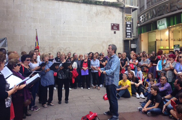 Els cantaires, d’arreu de Catalunya, han fet un itinerari per espais representatius de la Guerra de Successió a la ciutat i han acabat amb un cant conjunt a l’Auditori