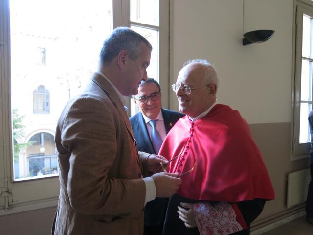 Àngel Ros felicita el nou doctor honoris causa de la UdL, Eugeni Bregolat
