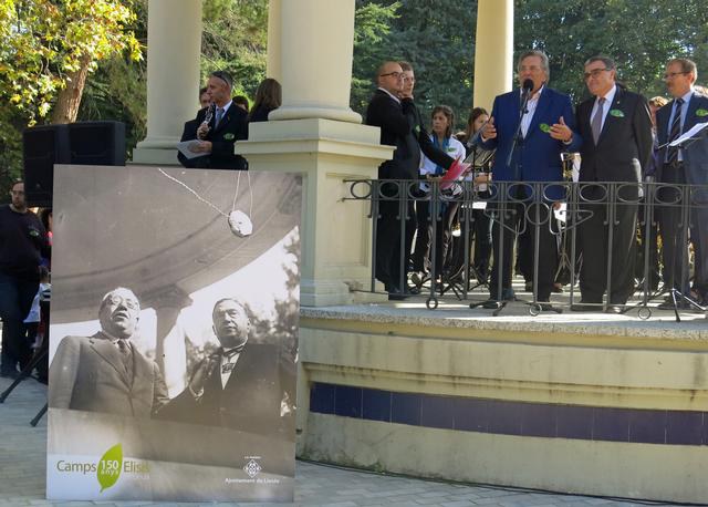 Lleida ha celebrat aquest diumenge els 150 anys dels Camps Elisis. El paer en cap, Àngel Ros, amb l’exalcalde Antoni Siurana, ha presidit els actes organitzats per commemorar aquesta efemèride i que han volgut compartir més de 3.000 persones durant el matí. L’alcalde Ros ha parlat dels tres segles que la ciutat ha viscut en els Camps Elisis, un jardí de tots. Un primer període, el segle XIX i el primer terç del XX, com a símbol de jardí romàntic. Als anys 60 del segle XIX, com a passeig obert i moder per a una ciutat que començava a deixar enrere les muralles. Va ser tot un fenomen social per la seva intensa vinculació amb la societat del moment. I el tercer període, amb la darrera reforma feta el 2007, que representa l’obertura definitiva del parc a la ciutat, obertura que avui vivim plegats i que és símbol del segle XXI.
