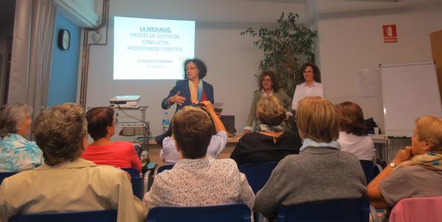 La primera de les sessions, dedicada a la mediació familiar, ha anat a càrrec de Mercè Cirera i Elda Michans, advocades i mediadores en l’àmbit familiar i del dret privat. Durant el decurs de la xerrada s’han explicat els avantatges d’optar per una mediació com a eina per resoldre situacions de conflicte en qualsevol àmbit. També han informat sobre com sol·licitar-la i quin és el procediment que se segueix. Així mateix, han exemplificat amb casos pràctics com la majoria de vegades la comunicació i el diàleg són la clau per resoldre conflictes de forma ràpida, econòmica i pacífica.