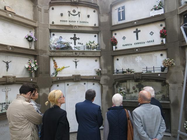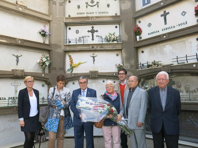 Durant la visita institucional al cementeri per Tots Sants s’ha destacat aquest any la figura del científic lleidatà Joan Oró. L’alcalde, acompanyat de la cosina d'Oró i dels tinents d’alcalde Marta Camps i Montse Mínguez, i del regidor de Salut Pública Oriol Yuguero, ha realitzat una ofrena floral davant la tomba d’aquest lleidatà il·lustre. (tall de veu 3 Àngel Ros)
