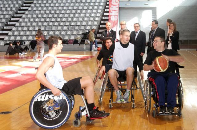 L’alcalde de Lleida, Àngel Ros, acompanyat de la tinent d’alcalde i regidora de Benestar Social, Montse Mínguez, i el tinent d’alcalde i regidor de Promoció Econòmica, Rafael Peris, ha compartit aquest matí amb els jugadors de l'Actel Força Lleida i l'Handbol Pardinyes la gimcana "Viu les discapacitats" organitzada per l'Ajuntament de Lleida amb motiu del Dia Internacional de les Persones amb Discapacitat, que se celebra avui 3 de desembre. A l'activitat també han assistit el president del Força Lleida, Fèlix González; la directora d'administració i finances de la Fundació Aspros, Anna Campos; el director de l'Once a Lleida, Domingo García, i Ferran de la Casa, jugador de l'equip de bàsquet adaptat d'Aspid, així com 20 alumnes del Cicle d'Intèrprets de Llengua de Signes.