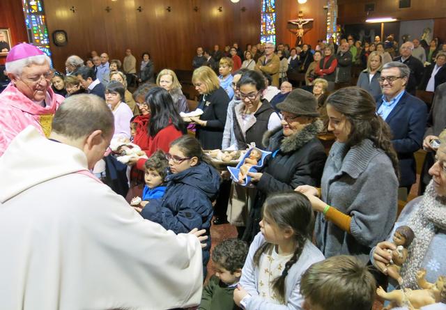 Com cada any, en acabar la missa, els infants s’han acostat a l’altar amb les figures de Jesús i el bisbe les ha beneïdes. L’Agrupació Ilerdenca, que inclou aquesta eucaristia en els actes del Cicle de Nadal a Lleida, ha obsequiat els nens i les nenes amb una estampa amb la imatge del nen Jesús de la Gruta de Betlem.