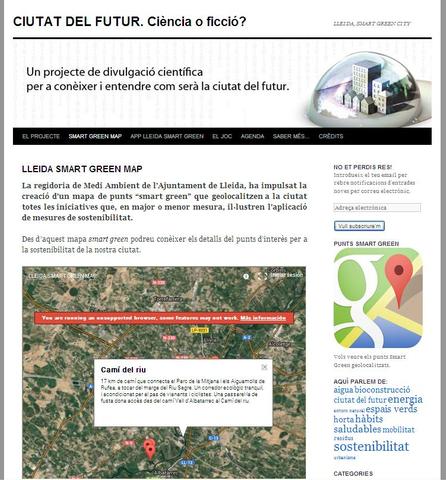 La regidoria d’Horta i Medi Ambient de l’Ajuntament de Lleida ha impulsat la creació d’un mapa interactiu de punts “smart green” que geolocalitzen a la ciutat totes les iniciatives que són un exemple en l’aplicació de mesures de sostenibilitat. El mapa interactiu, que es pot consultar al web http://www.ciutatdelfutur.cat/lleida-smart-green-map/, ofereix els detalls de 43 punts d’interès en matèria de sostenibilitat a Lleida, organitzats per temàtiques i amb una fitxa detallada de les seves característiques.